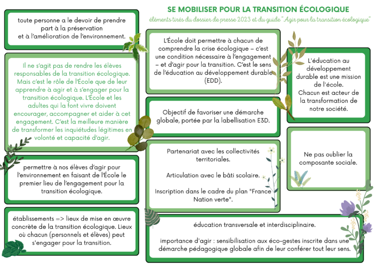 Annonce du 23/0/06/23 Synthèse Objectifs : Donner à tous les élèves les moyens de comprendre la transition écologique pour en devenir les acteurs ; s’engager