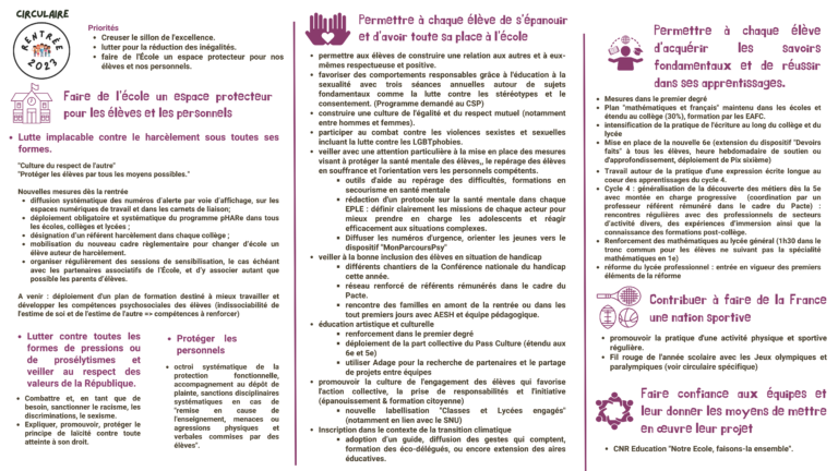 « Une École qui instruit, émancipe et protège ». Une synthèse des mesures, axée second degré (collège / lycée), de la circulaire de rentrée 2023 parue le